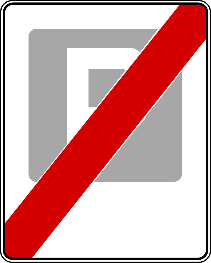 Znak D-45 „koniec strefy płatnego parkowania” stosuje się w celu wskazania końca strefy płatnego parkowania.