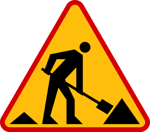 Znak ostrzega przed miejscem, w którym prowadzone są na drodze roboty, gdzie kierujący może spotkać osoby pracujące na drodze lub przeszkody utrudniające ruch, takie jak maszyny, materiały.