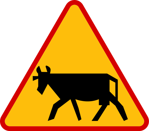 Znak zobowiązuje uczestników ruchu do zachowania szczególnej ostrożności w miejscach, gdzie można napotkać na drodze zwierzęta gospodarskie.