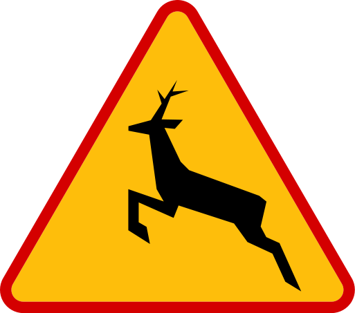 Znak ostrzega przed możliwością napotkania na drodze zwierząt dzikich.