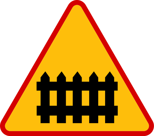 Znak ostrzega przed przejazdem kolejowo-drogowym wyposażonym w zapory zamykające całą szerokość jezdni lub półzapory zamykające wjazd na przejazd.